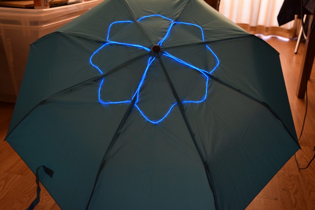 6. Its time to mount all this to the umbrella, we had stitched the EL Wire as shown, you can opt for any kind of pattern you need. Make sure to check your pattern for the length of EL Wire available with you, before starting the stitching.